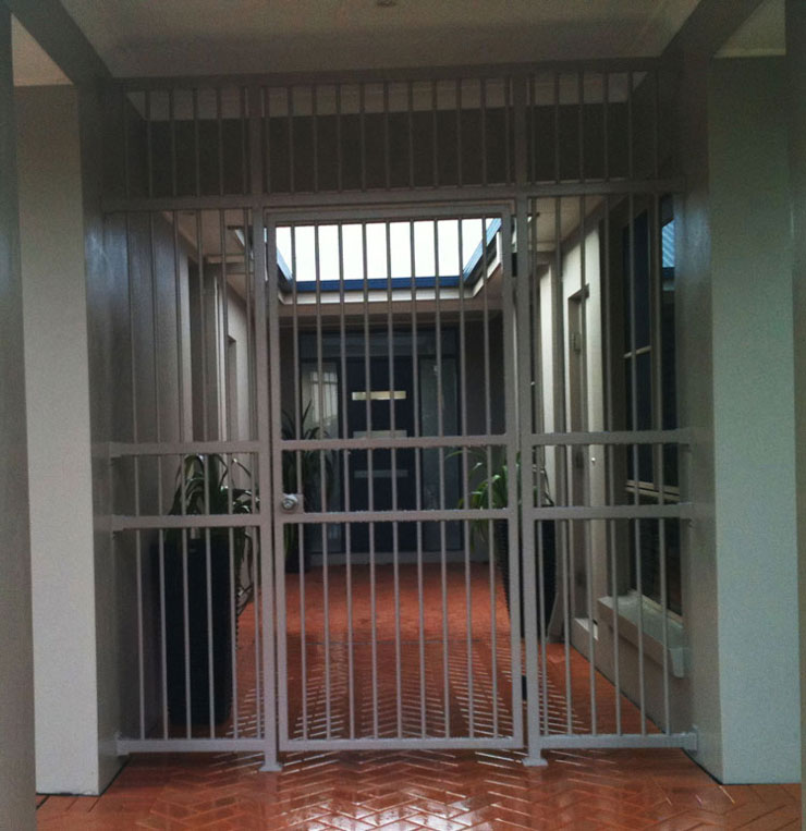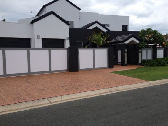 Pedestrian, sliding gate and double gate as part of the front fence, with its own added security of a high profile.