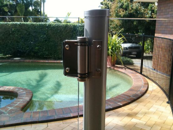 Pool gates are the most important part of a pool fence. Here Hi-Liner have set an aluminium gate to the aluminium pool fence.
