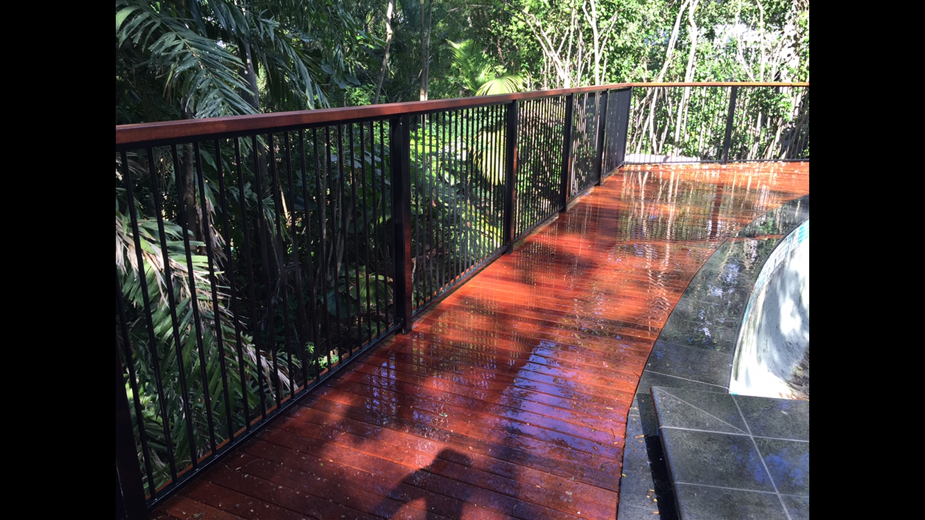 Change the look of your pool fence by adding a balustrade rail to match the deck.