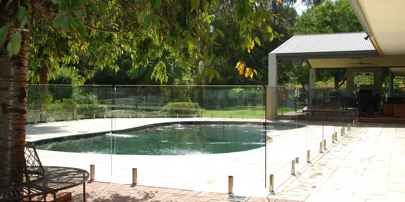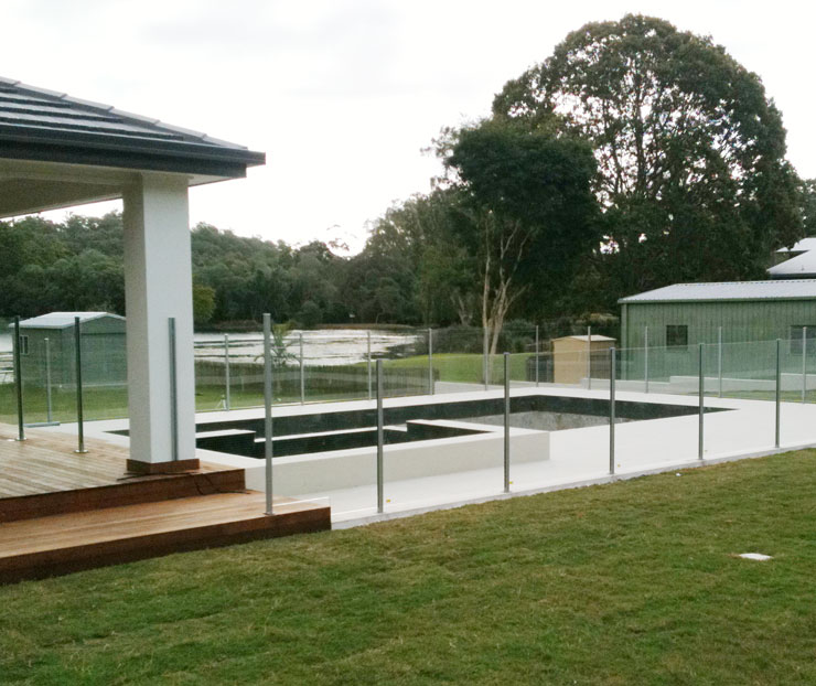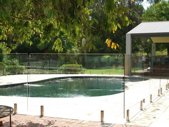 Semi Frame-less glass pool fencing for the great out doors. You see the pool before you see the glass pool fencing. Great glass pool fencing.