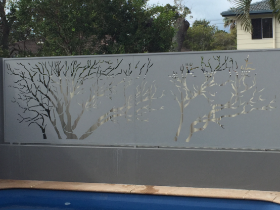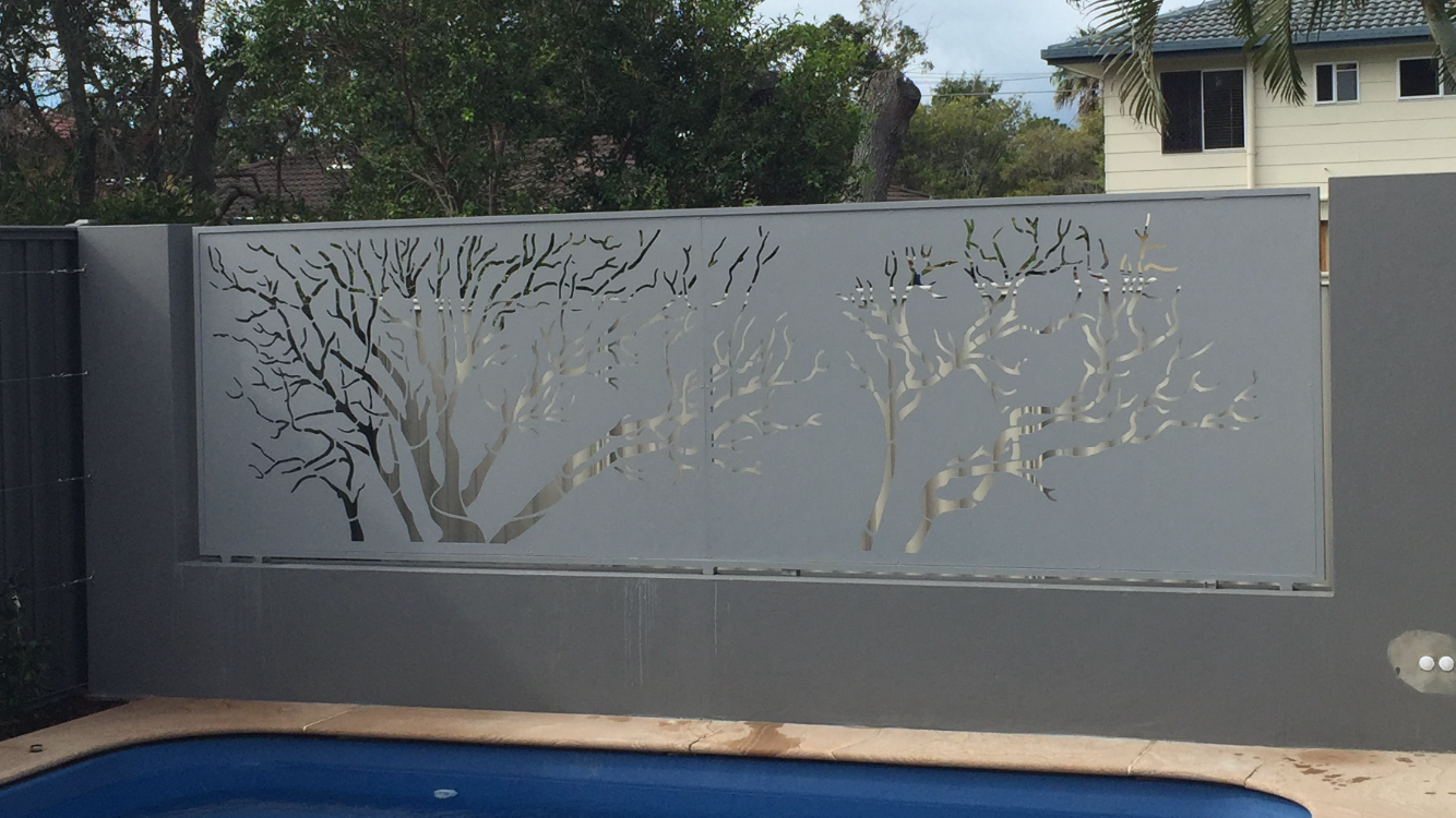 A privacy screen adding art to the pool area